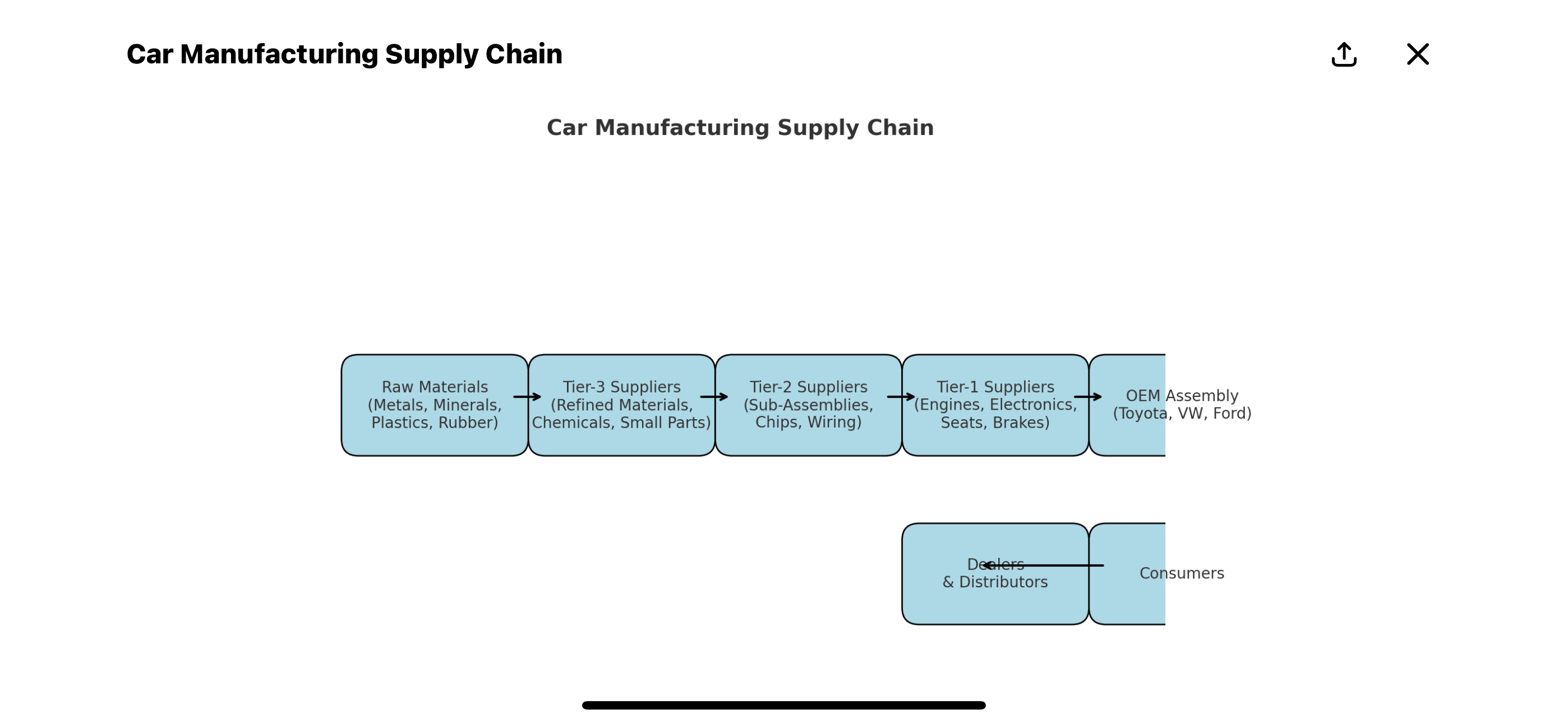 Would you like me to draw you a diagram showing how car supply chains flow (from raw materials → Tier-3 → Tier-2 → Tier-1 → OEM assembly → dealers) so you can visualize the orchestration clearly?
