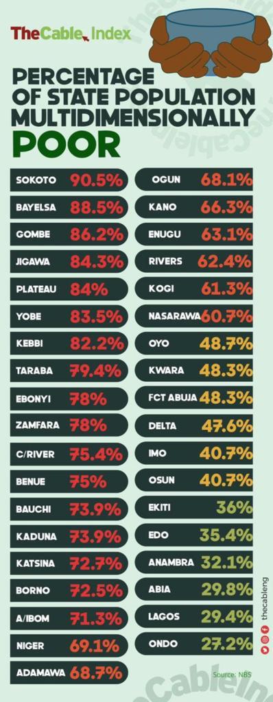 Nigeria’s states. Percentage Multidimensional Poverty. By the cable index