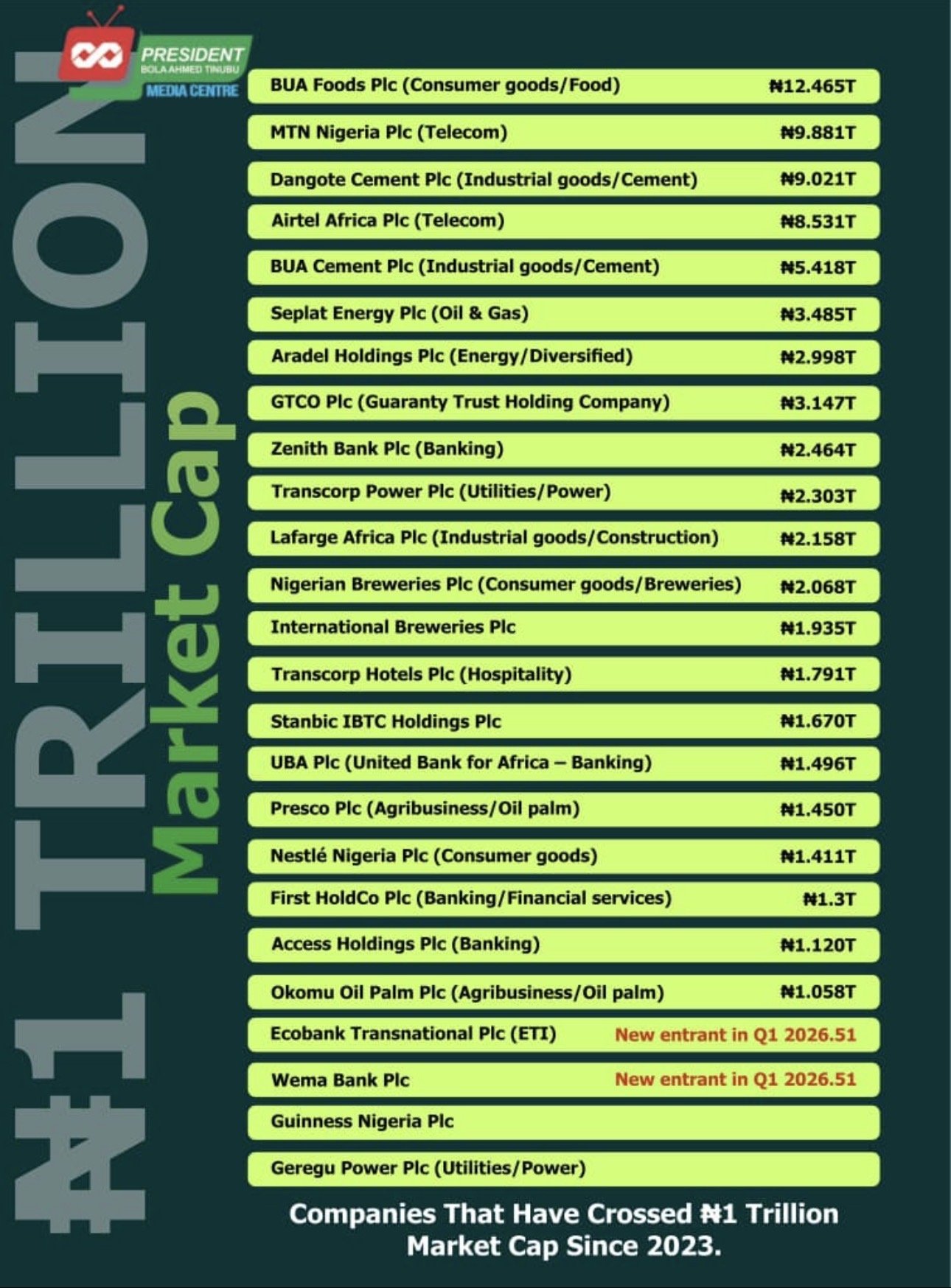 The following analysis presents a structured overview of Nigerian companies that have achieved a market capitalization surpassing ₦1 trillion since 2023, based on data as of early 2026. The original nominal values in Nigerian Naira (₦) trillions are re-presented across multiple comparative dimensions to facilitate a comprehensive professional discourse.