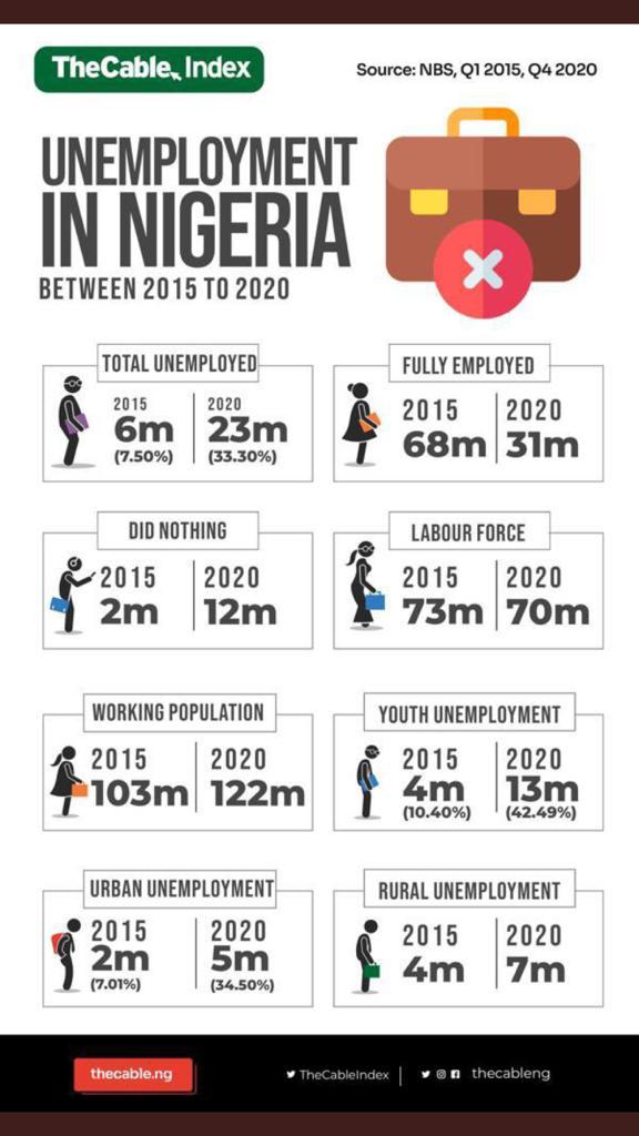 Nigeria’s unemployment statistics. 2015 to 2022