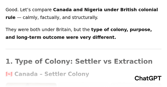 Good. Let’s compare Canada and Nigeria under British colonial rule — calmly, factually, and structurally.