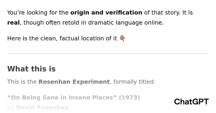 35 real psychiatric patients saw through the act immediately, saying things like: